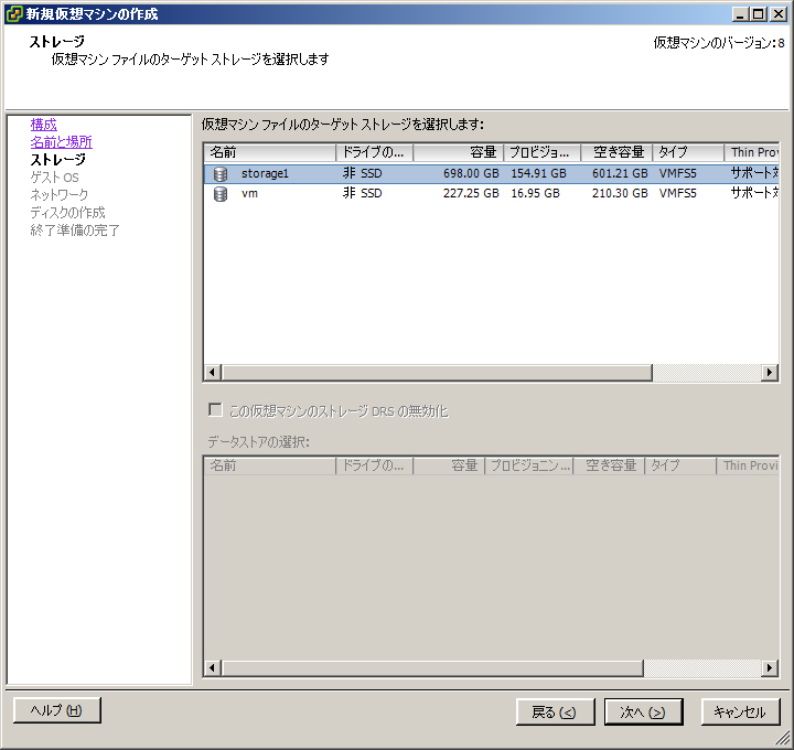 1. [ 仮想 マシンファイル ] のターゲットストレージを選択します