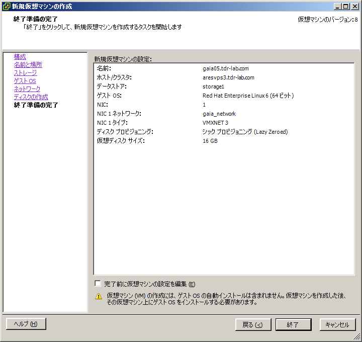 新規に仮想マシンを作成する
